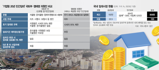 이번 발의는 국토부가 지난해 8월 도입 계획을 밝힌 ‘신유형 장기민간임대’ 제도를 민주당 측이 수정·발전시킨 대안이라는 점에서 주목할 만하다. 국토부는 기업형 20년 민간임대를 도입하되 세 가지 유형으로 나눠 정부 지원이 적을수록 규제를 많이 풀어주는 방식을 제시했다. 국토부는 국내 임대 주택의 77.5%(664만 호, 2023년 기준)를 차지하는 민간임대 시장이 개인 간 거래에 의존한 탓에 전세사기 같은 부작용이 나타났다고 보고 이 같은 민간 임대 정책을 설계했다.