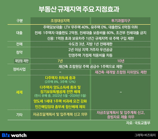 부동산 규제지역 주요 지정효과/그래픽=비즈워치