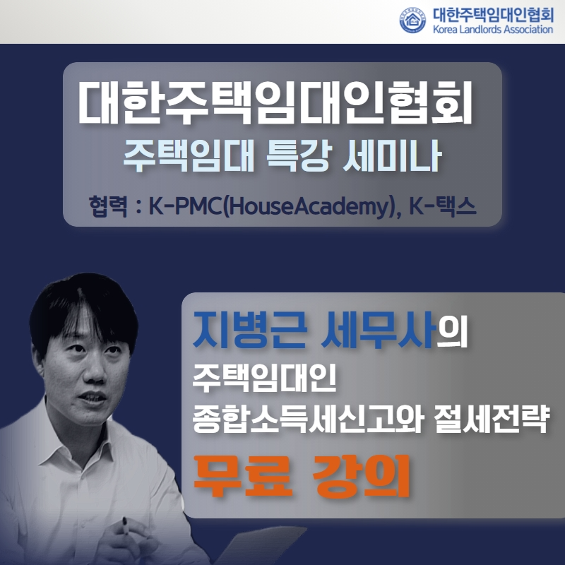 대한주택임대인협회, K-피엠씨(Houseacademy), K-tax 가 협업하여 주택임대인을 위한 온라인 세미나를 준비하고 있습니다.